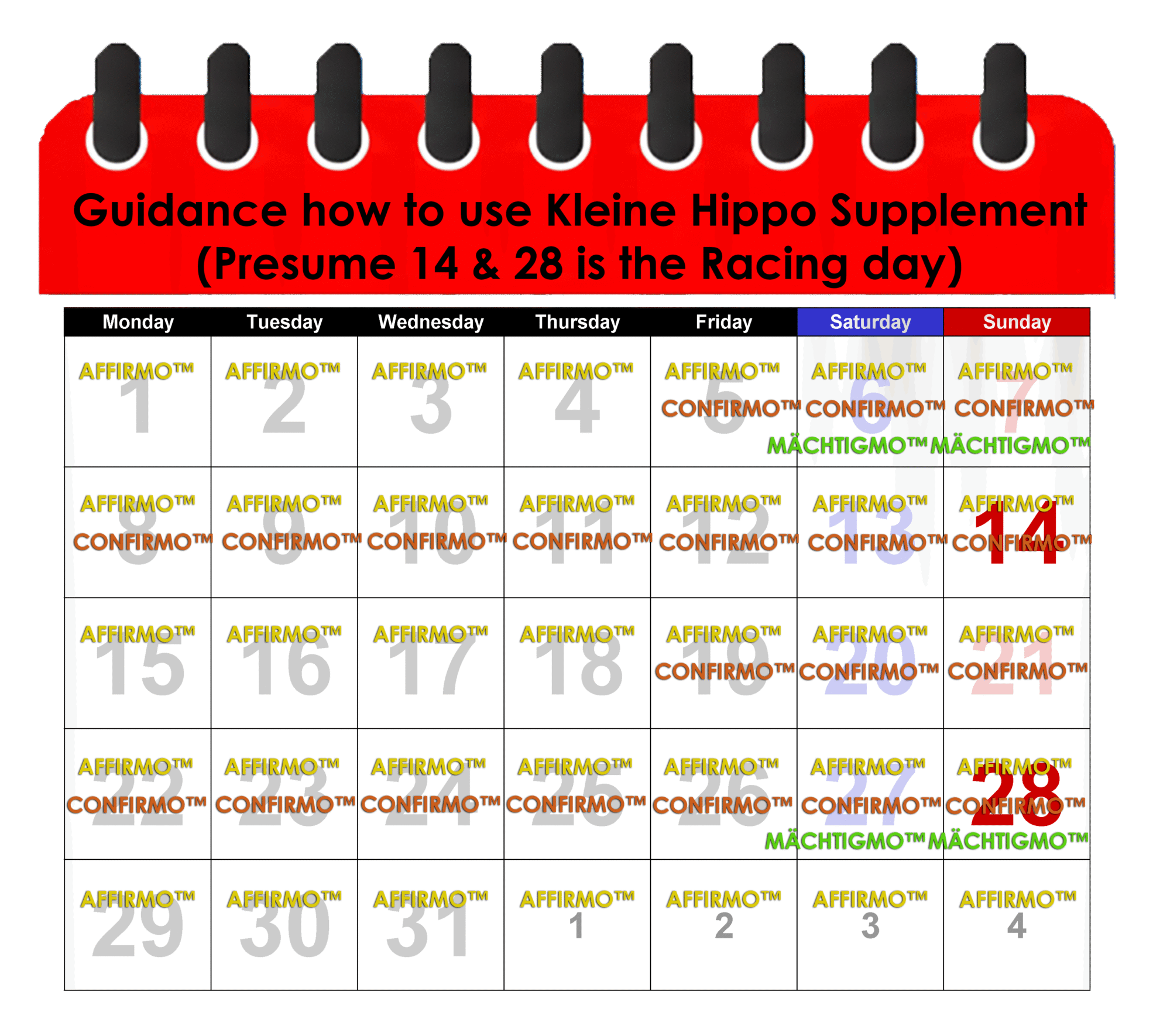 - 1 weeks before racing schedule : can be increase to 2x daily